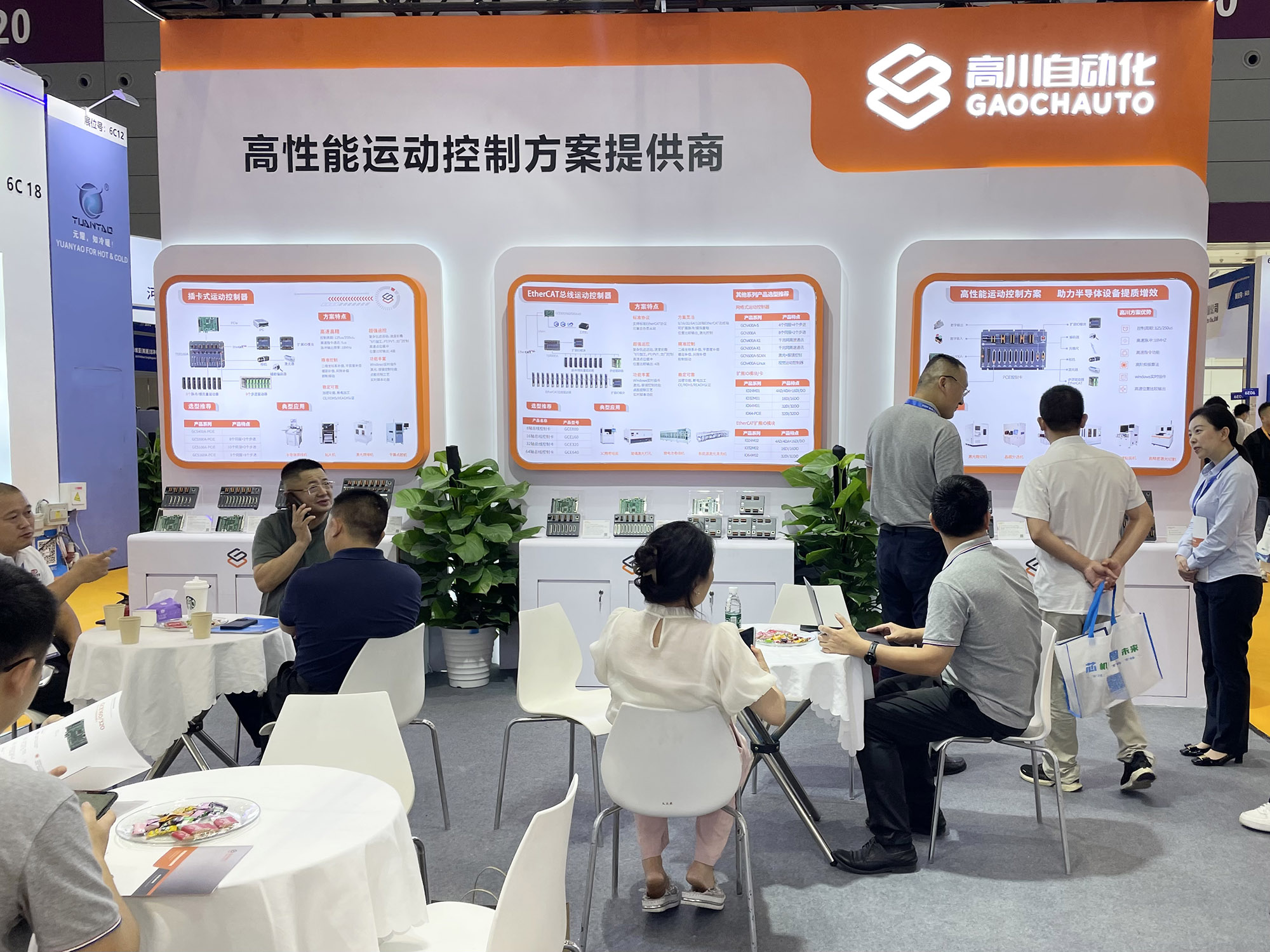 在此次展會上,高川自動化展示了一系列高性能運動控制產品和解決方案,吸引了眾多來自各地的專業觀眾前來參觀和咨詢。公司團隊為客戶耐心講解,讓客戶深入了解了高川自動化高速高精的運動控制方案在半導體設備上所具備的優勢,助力半導體設備提質增效。