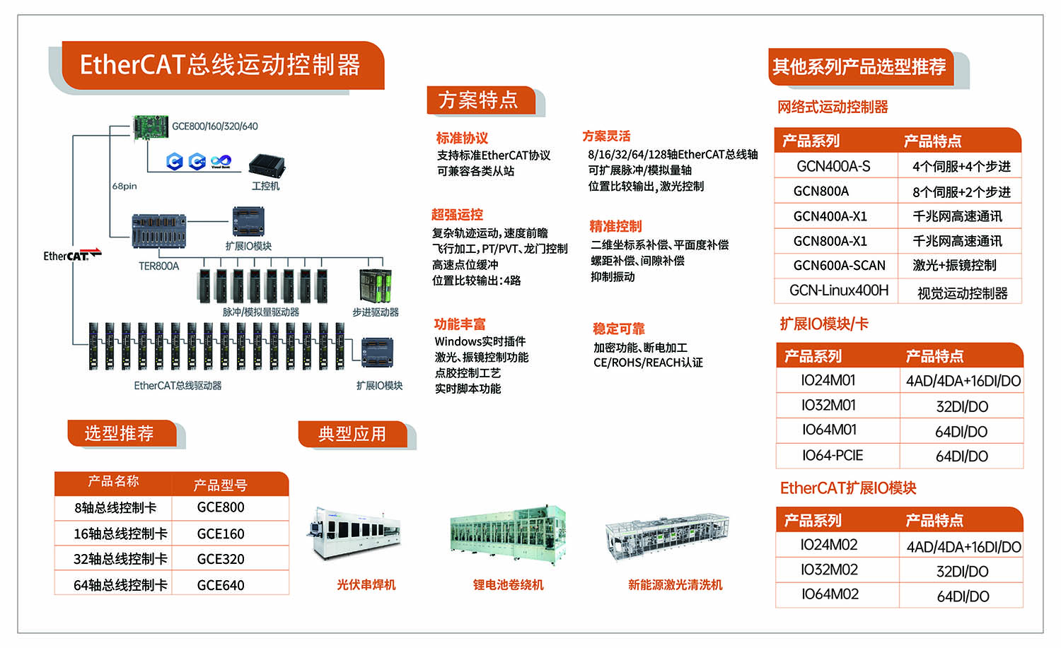 公司產品主要包括:插卡型運動控制卡、網絡型運動控制器、EtherCAT總線型運動控制卡、行業定制運動控制器等。